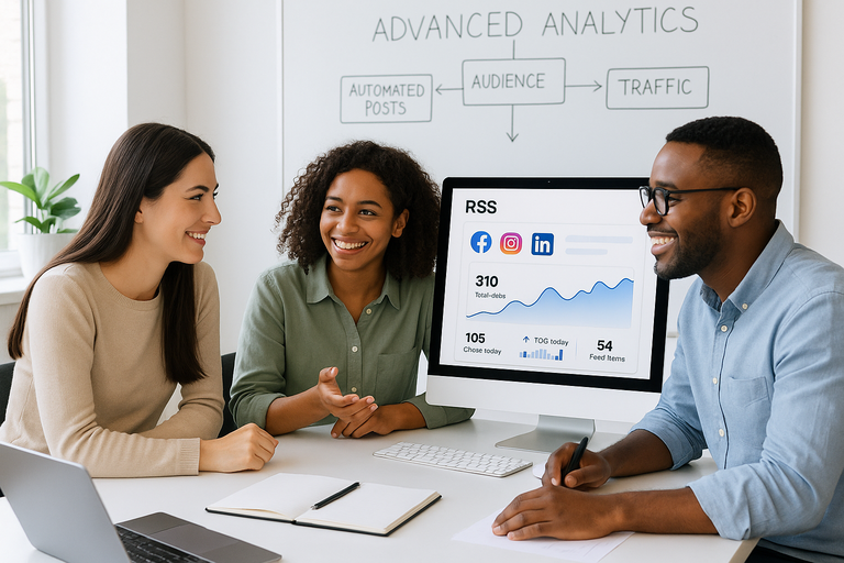 Save time and never miss an update: Instantly share the latest articles, podcasts, or videos from any RSS source to Facebook, Instagram, X, TikTok, and more — hands-free and always on schedule.